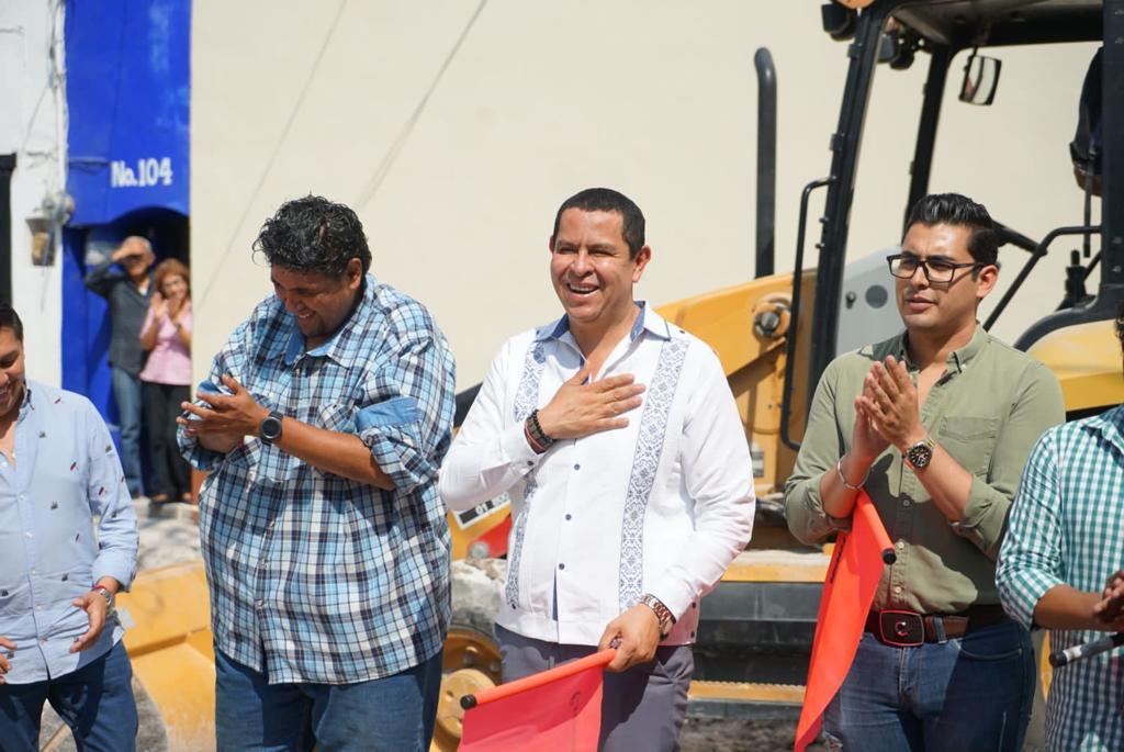 Asimismo llevó a cabo la inauguración de los trabajos de construcción de banquetas y pavimento de concreto hidráulico estampado, así como la rehabilitación de drenaje sanitario y el sistema de red hidráulica de la calle Riva Palacios en Jojutla.