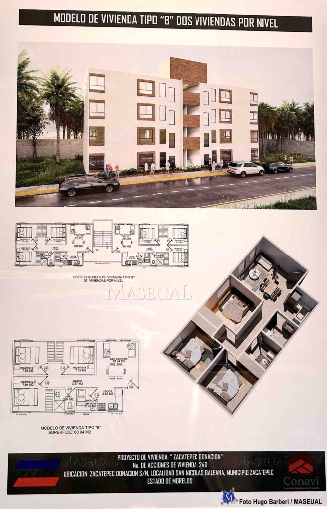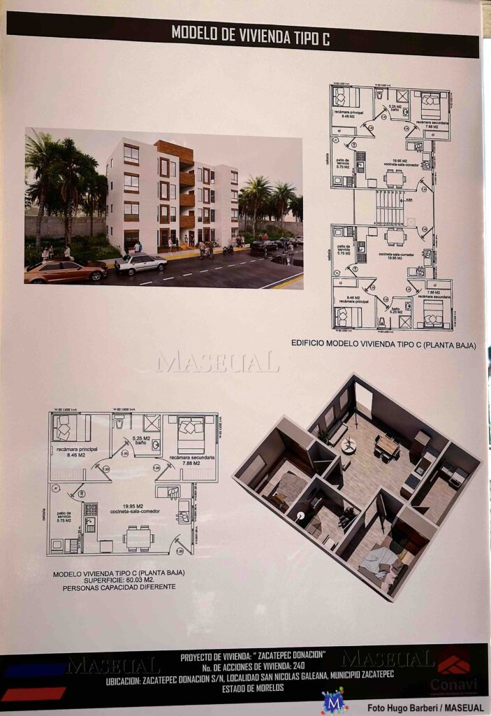 Para tal evento, se reunieron representantes del gobierno federal, estatal y municipal, donde se precisó que dicho conjunto habitacional también contempla una construcción urbana que toma en cuenta a las personas con discapacidad, con estacionamiento que también incluye a motocicletas, áreas verdes y de esparcimiento suficientes. Serán de 60 metros cuadrados, con dos habitaciones, cocina, baño, comedor y área de lavado.