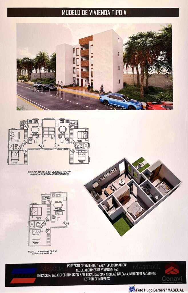 También, añadió Quetzalli Hernández, designaron a una constructora, que cuenta con todas las credenciales técnicas, jurídicas y sociales, para poder hacer esta vivienda a un costo-obra, “no a un costo inmobiliario”, por lo que se construirán casas “muy por debajo del monto privado”.